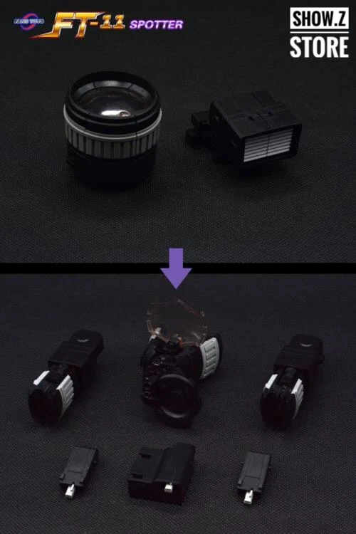 This newest product from Fans Toys is SPOTTER. Spotter is based on the Decepticon Trio Reflector. The figures are going to be roughly 6.5 inches tall in their Robot Mode. Transforms and combines to a camera, . These photos are from the prototype only, and the final product is subject to change.