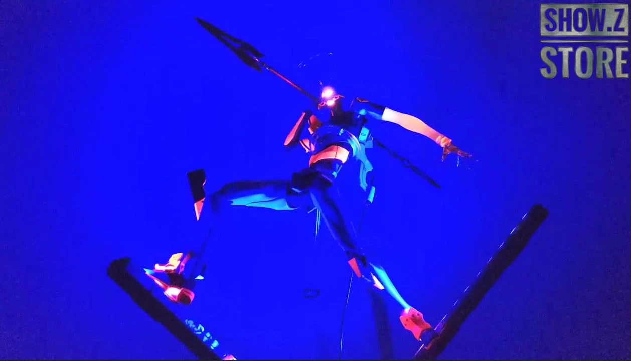 – Includes LED display base with blue lights